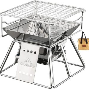 CAMPINGMOON Stainless Steel Portable Charcoal Grill with Carry Bag